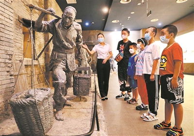 7月13日,河北省秦皇岛市海港区河东街道工人北里社区组织小朋友走进秦皇岛市玻璃博物馆参观,讲解员为小朋友讲解玻璃的起源、发展等内容,带领小朋友零距离感受玻璃文化,快乐过暑假。图为秦皇岛市玻璃博物馆讲解员在为小朋友介绍展品。