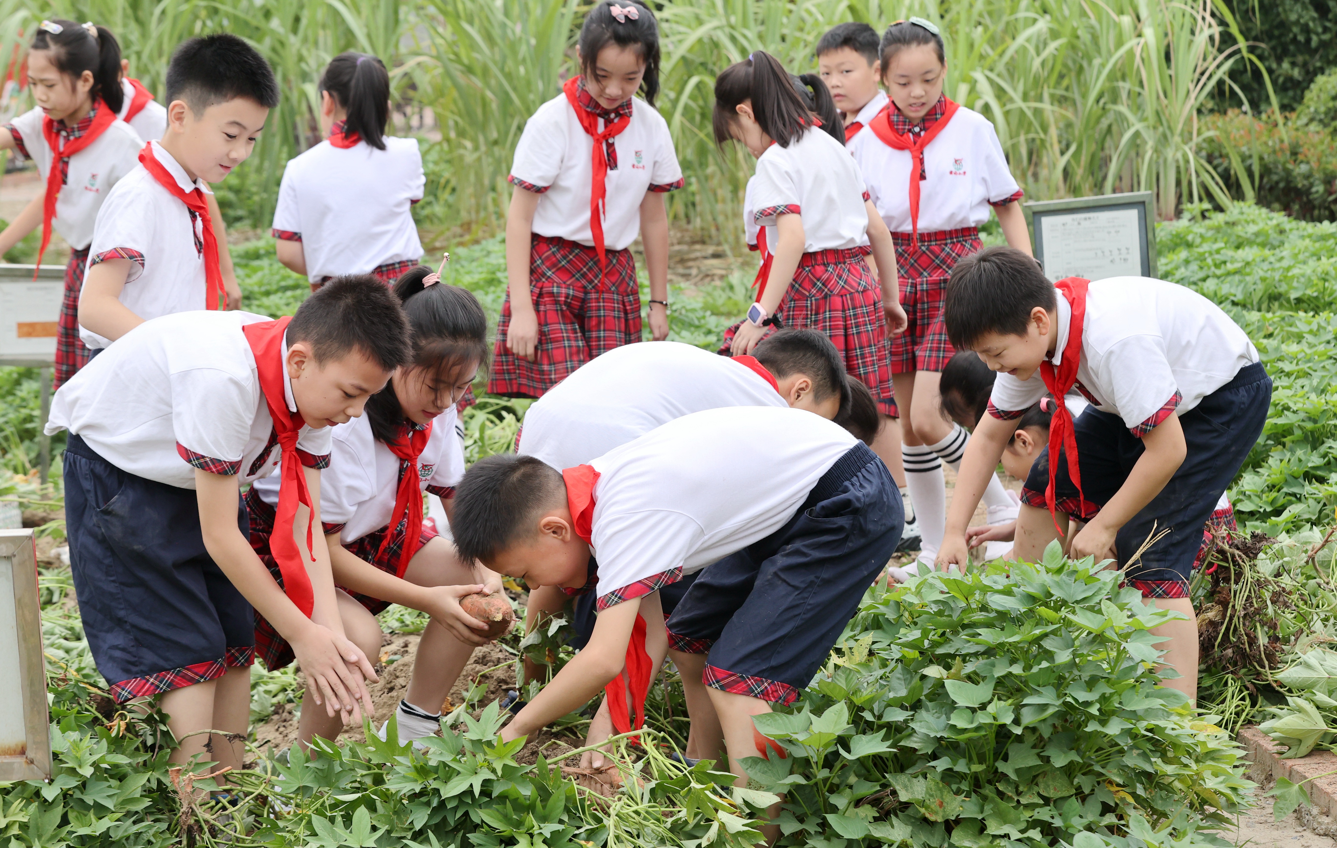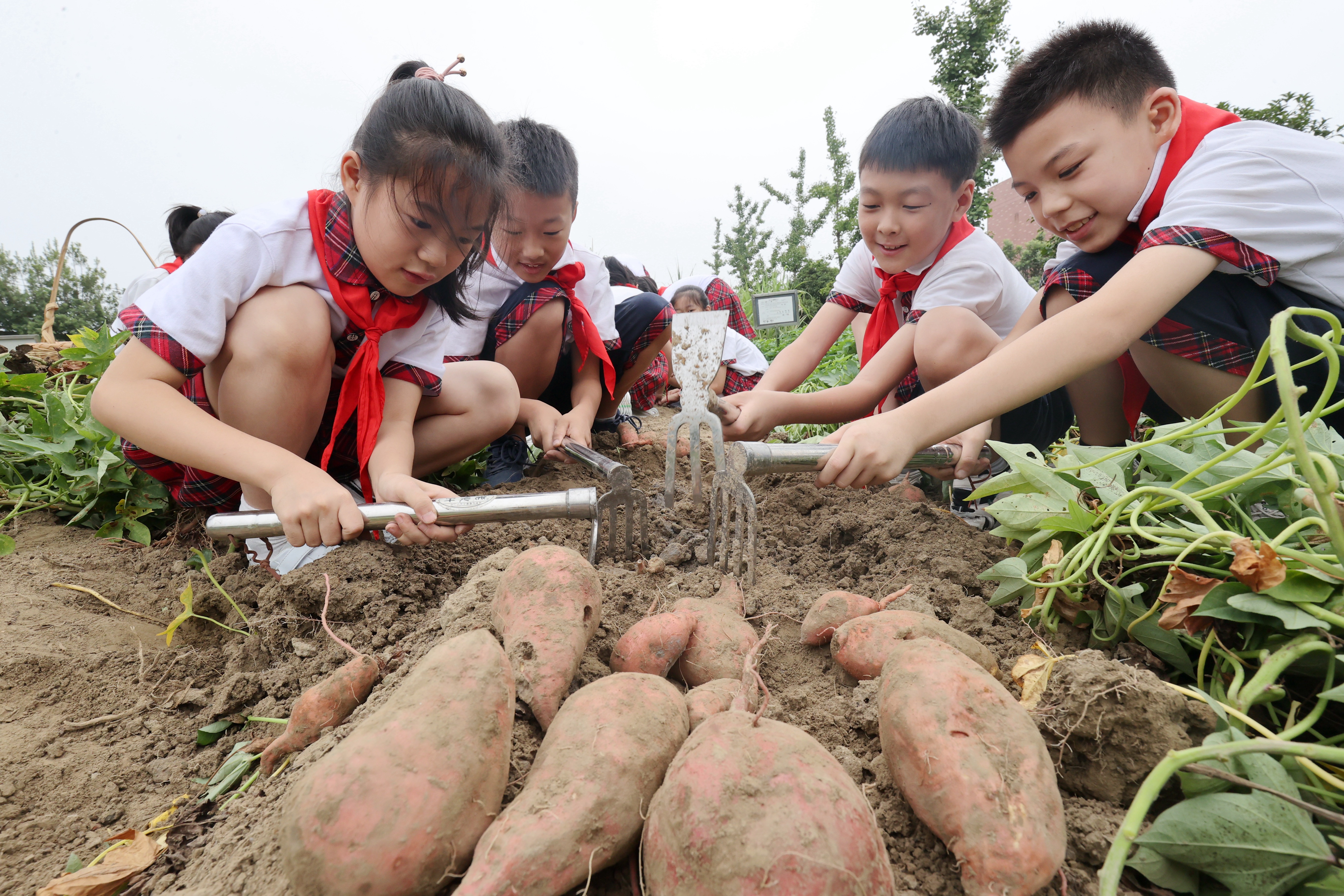 学生在校园农场搬运番薯。通讯员 谢尚国 摄 学生在校园农场挖番薯。通讯员 谢尚国 摄 学生在校园农场挖番薯。通讯员 谢尚国 摄 9月1日,浙江省湖州市德清县雷甸镇中心小学开展以劳动实践教育为主题的“开学第一课”,学生们参加收番薯、割甘蔗、蔬菜浇水等特色劳动课程,感受劳动的艰辛和丰收的快乐,培养勤俭节约、热爱劳动的好习惯。今年以来,德清县积极探索学科课程与劳动实践教育相结合的教育模式,鼓励各中小学校开设校园农场,定期组织学生开展劳动实践活动。中国教育报-中国教育新闻网通讯员 谢尚国 摄
